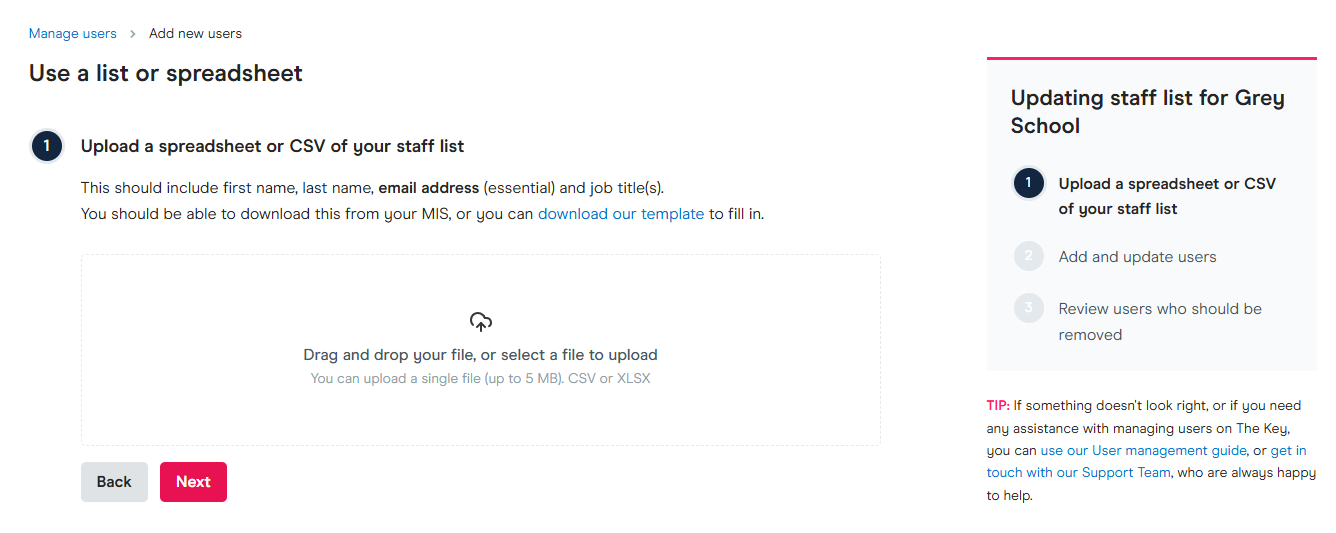 - Upload a spreadsheet or CSV of your staff list