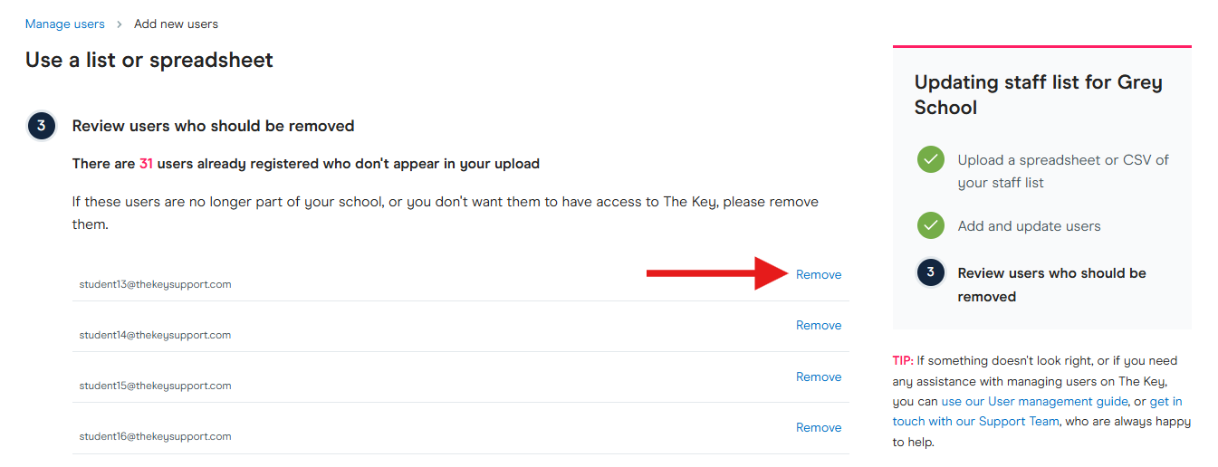 - You will then see a list of all the users that are already on your account, with the option to remove any old/no longer relevant accounts.